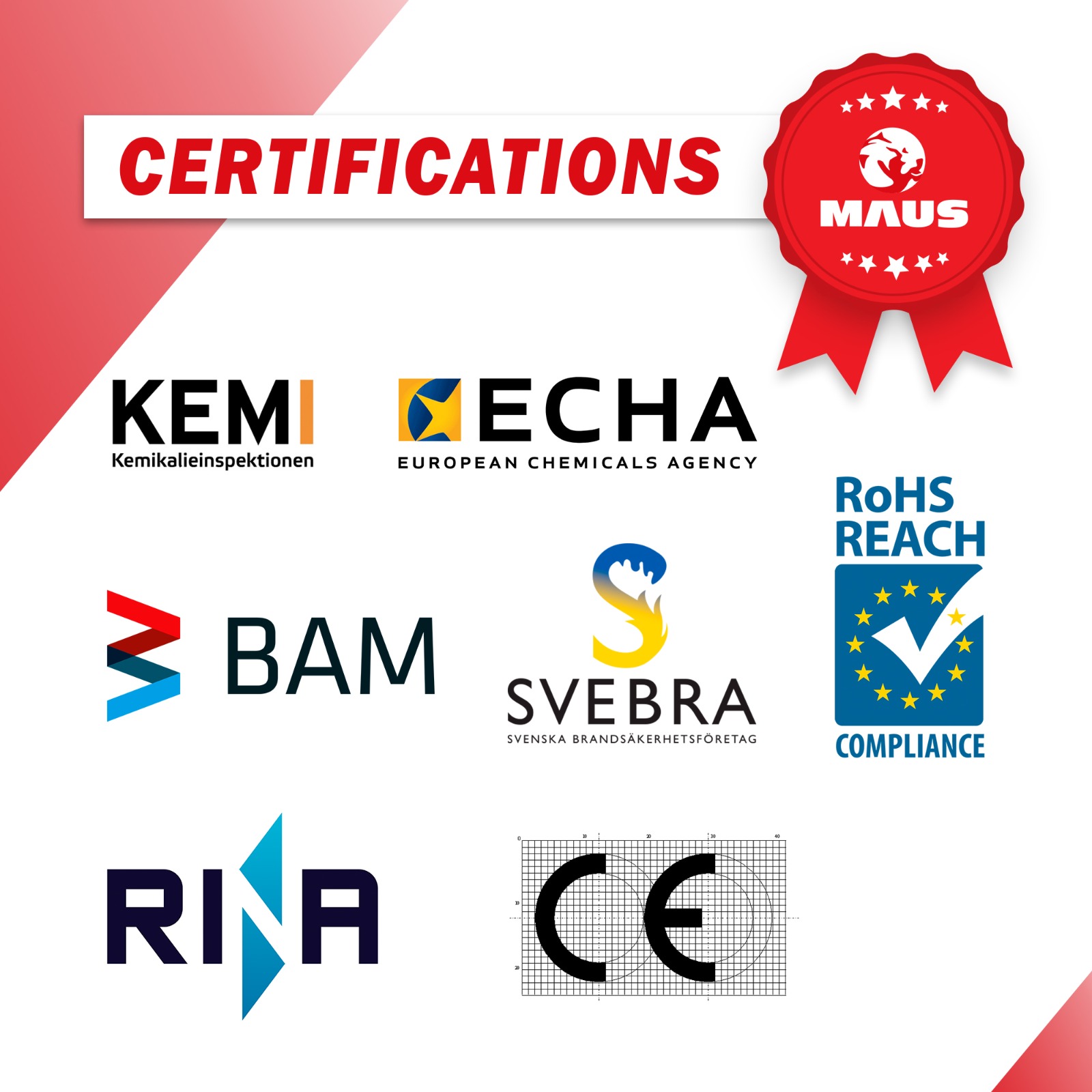 Produkty MAUS splňují nejpřísnější mezinárodní normy a jsou certifikovány předními světovými institucemi.